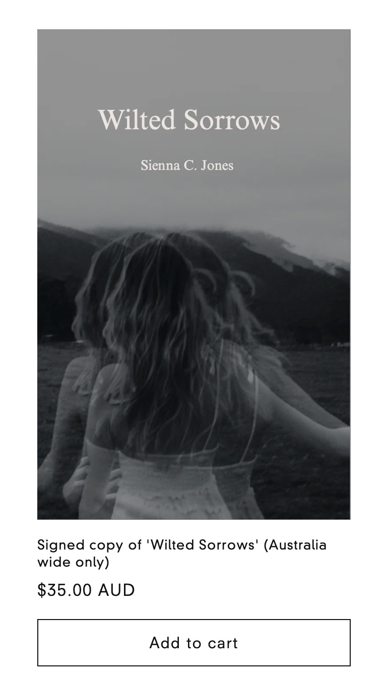 Purchase a signed copy of 'Wilted Sorrows' by Sienna C. Jones while stock lasts! Click the link above to transfer to the shop. Thank you.